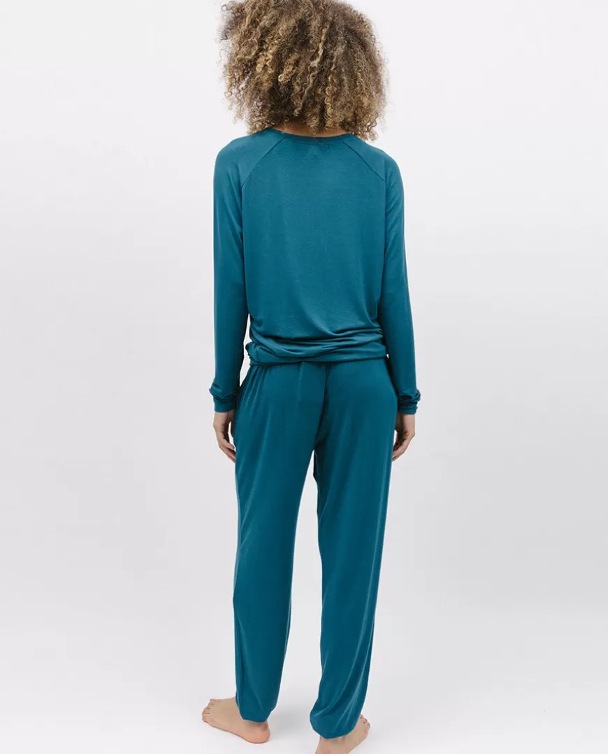 Experience The Epitome Of Comfort And Style With Our Luxurious Teal Slouch Jersey Pyjama Top From The Maple Collection. Crafted From A Sumptuously Soft Blend Of 95% Modal And 5% Elastane, This Pyjama Top Ensures A Heavenly Feel Against Your Skin. With Its Long Raglan Sleeves, This Pyjama Top Offers A Relaxed And Laid-Back Silhouette, Perfect For Unwinding After A Long Day. The Subtle Self-Fabric Trim Adds An Elegant Touch To The Overall Design, Showcasing Attention To Detail. To Create A Coordinated Sleepwear Ensemble, Simply Pair This Top With The Matching Pyjama Bottoms From Our Maple Collection. Alternatively, You Can Mix And Match With Our Range Of Printed Pyjama Bottoms For A Personalized Touch. Whether You’Re Lounging Around The House Or Drifting Off To Sleep, Our Slouch Jersey Pyjama Top Guarantees A Delightful Experience.
