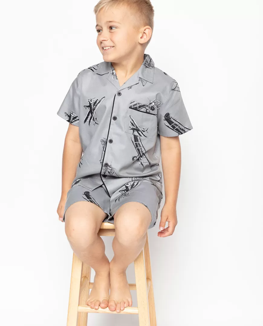 Samuel Grey Aeroplane Print Shorty Set^Cyberjammies Sale