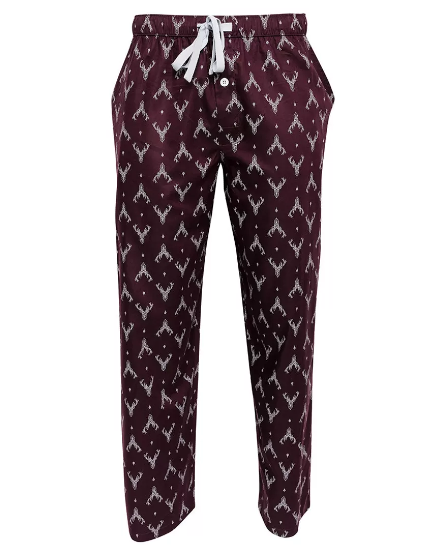 Upgrade Your Sleepwear Collection With Our Men’S Deep Rich Burgundy Geometric Stag Print Pyjama Bottoms And Indulge In U…