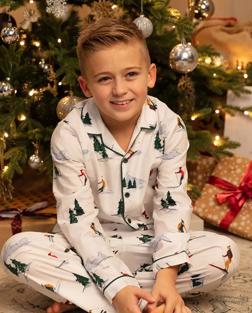 Take The Kids On A Winter Wonderland Journey Every Night In Our Whistler White Mix Ski Print Long Sleeve Pyjama Set. The…