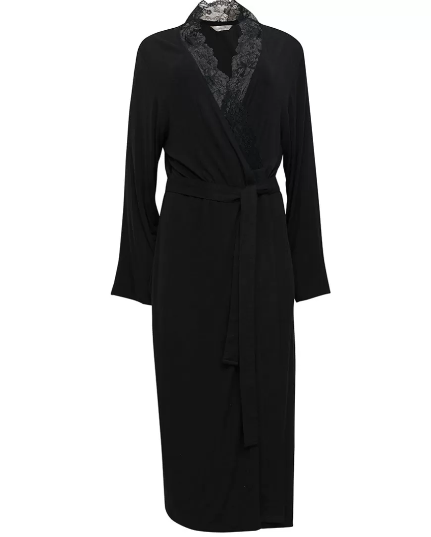 Winnie Black Lace Detail Jersey Long Dressing Gown^Cyberjammies Flash Sale